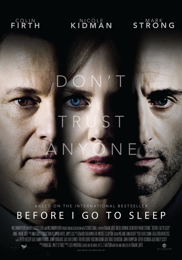 (Sidenote: Before I Go To Sleep- This movie stars Nicole Kidman as Christine Lucas who suffering from amnesia and forgets everything that happens once she wakes up. Her husband Ben Lucas, played by Colin Firth always has to remind her of who she is. Lately, Christine gets help by a doctor named Dr. Nasch, played by Mark Strong, who has her secretly record her thoughts everyday, and reminds her everyday to go watch it. She soon starts remembering on what really happened to her, and realizes she can’t trust anybody. This thriller was predictable with a lot of slow dragging moments. Once it gets to the plot twist, it was whatever.